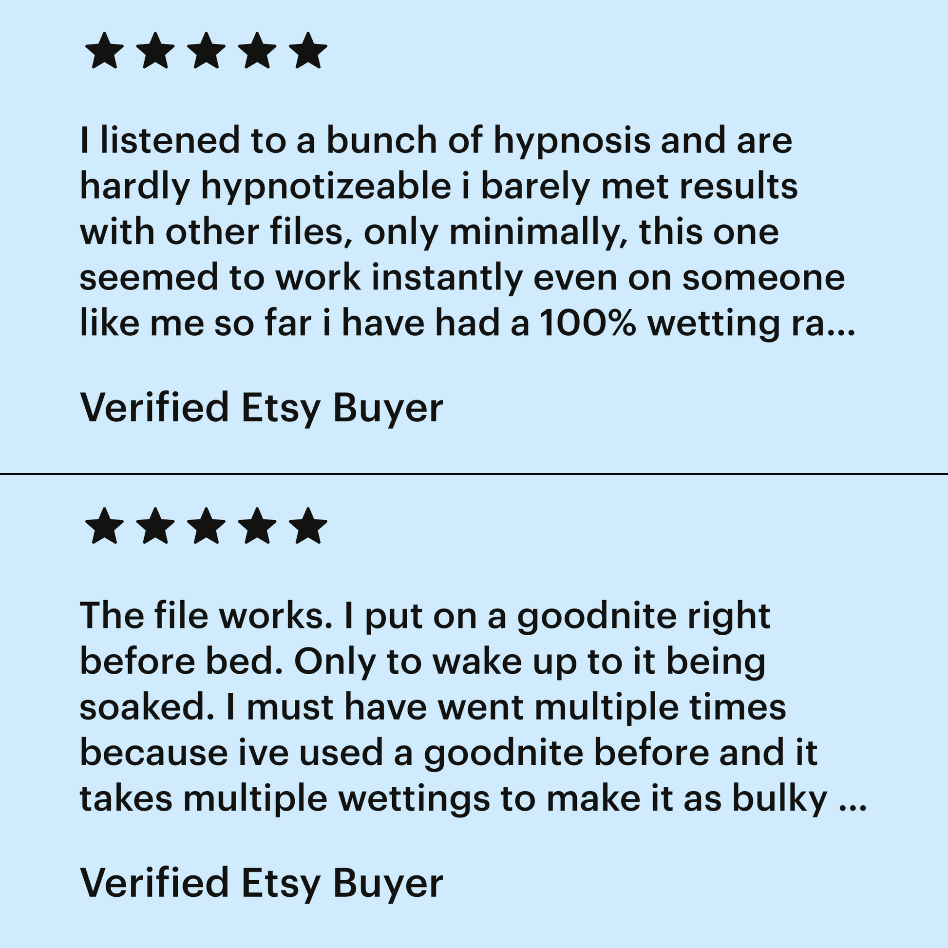 Been trying for years to become a bedwetter and have real accidents. I have been listening everyday for almost a month and I haven't had a dry night in almost over a week and a half. I've been waking up soaked without any recollection of wetting!